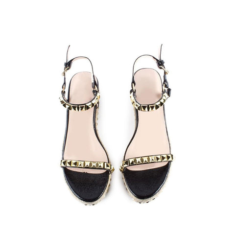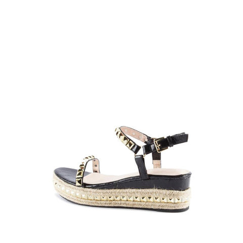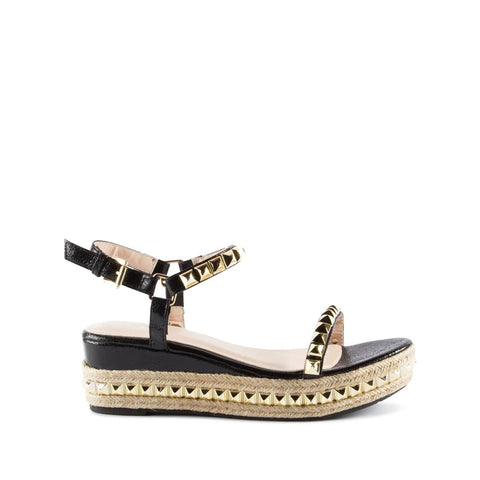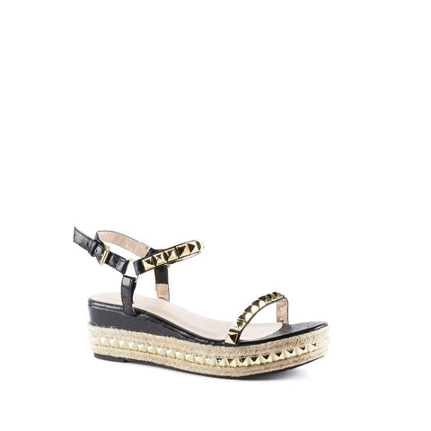 We’re getting 90s vibes from these shining Nubia Espadrille flat forms. Make a bold statement in these ultra-comfort sandals, complete with stretchy ankle strap. Available in Black, Silver and Rose Gold.