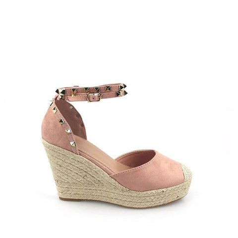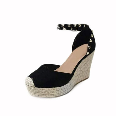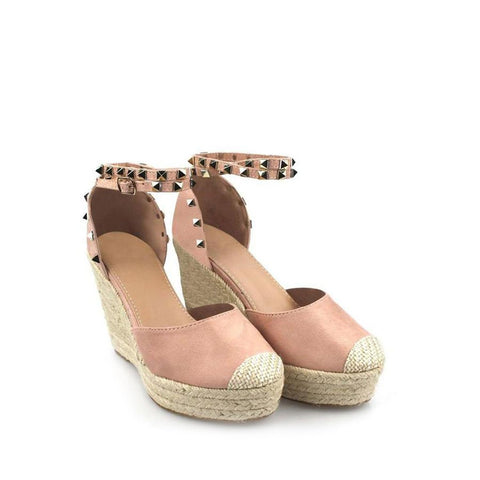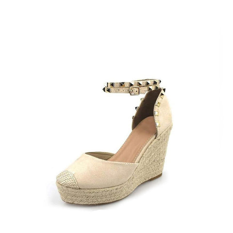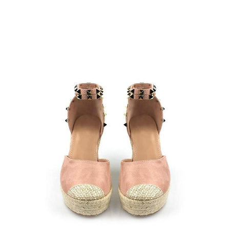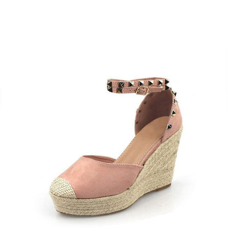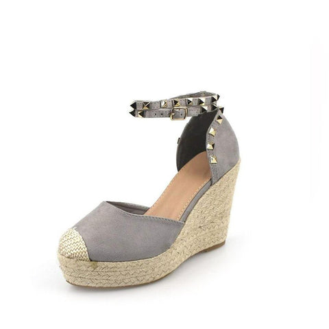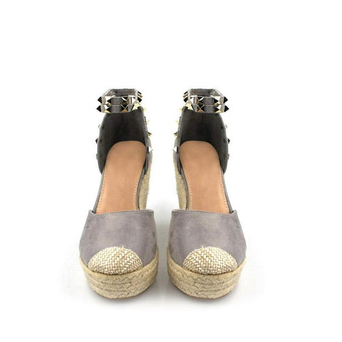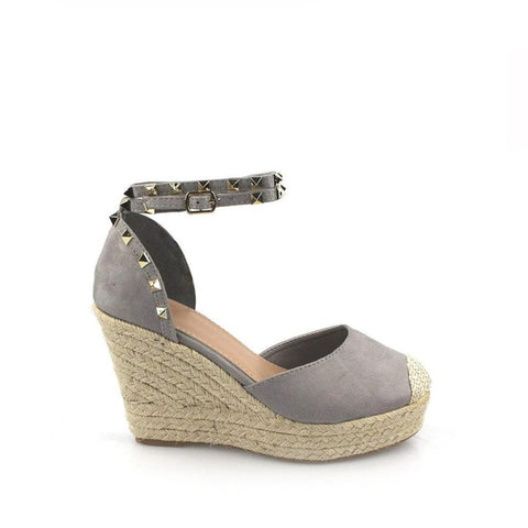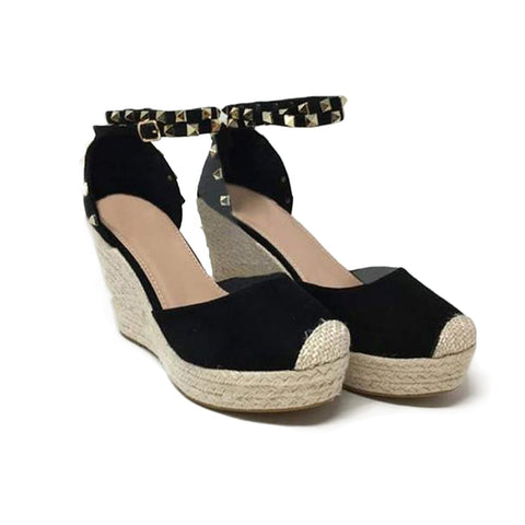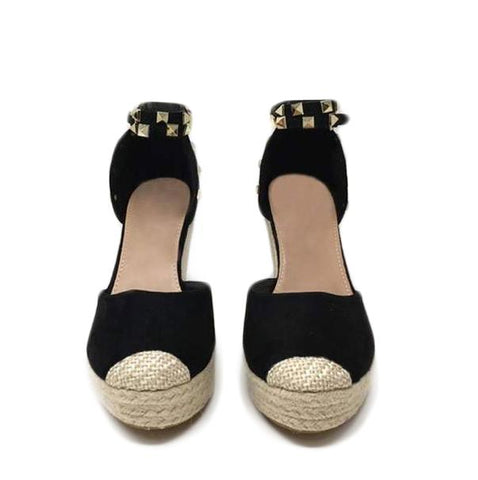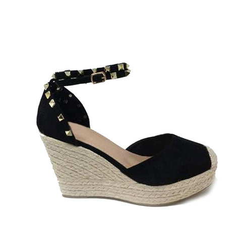 Stay sassy this summer in these gorgeous Tina Studded Wedges! With a wedge heel with rope espadrille detailing, these wedge sandals feature a buckle ankle strap, canvas upper and cool stud detailing for a hint of badass attitude. Every girl needs a pair!