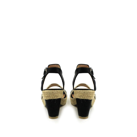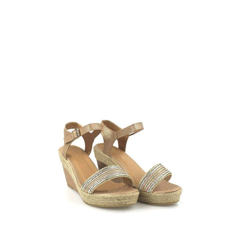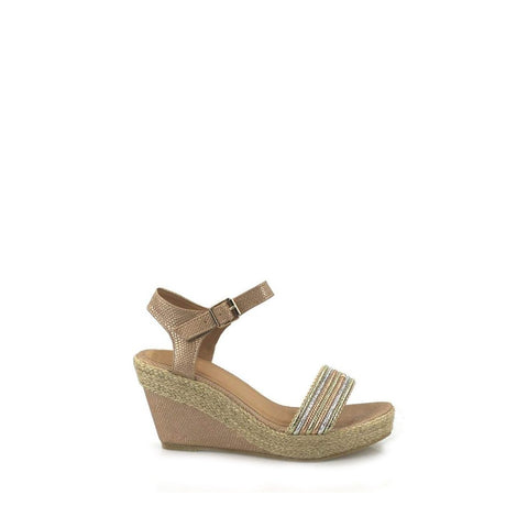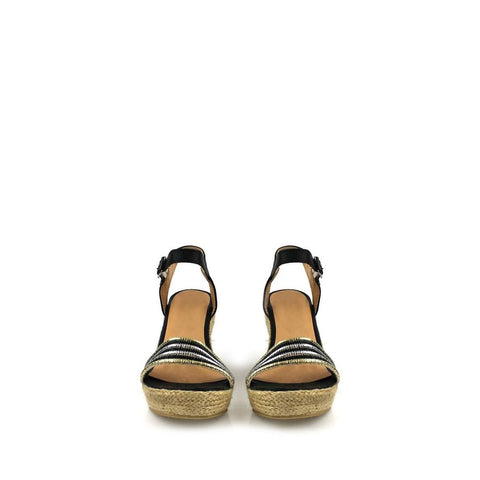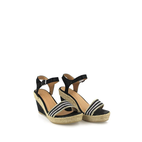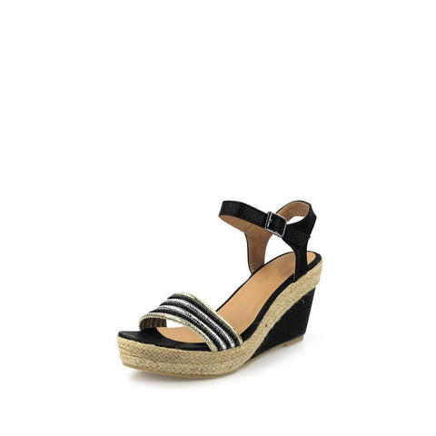Give your style some sass with our Kyla wedge sandals! With a wedge heel with espadrille detailing, a buckle ankle strap and toe upper with funky metallic detailing, these cute sandals are sure to keep all eyes on you. Available in Black, Light Gold and Pewter, you're sure to find one that will suit your style and keep you looking on point this summer.