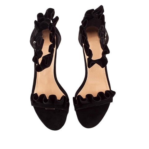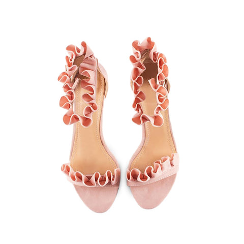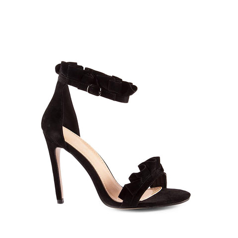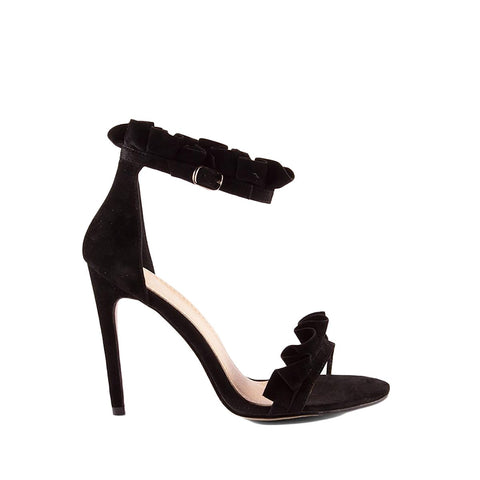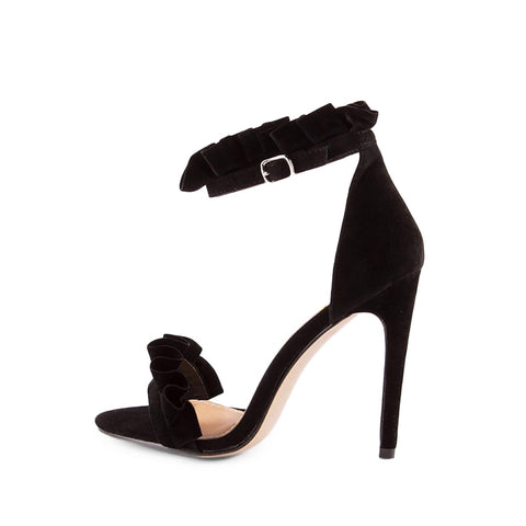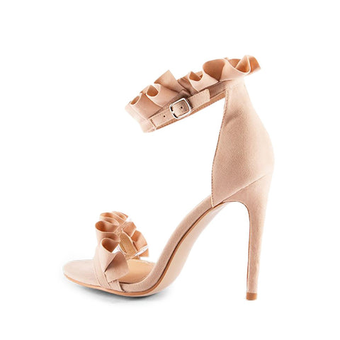 A pretty touch to a classic shape, these Saskia Stiletto Sandals have lovely frill detailing for an added touch of style. With a slim buckle ankle strap, these beautiful heels are perfect for any occasion where you want to bring your A-game. Available in Black, Nude and Pink.
