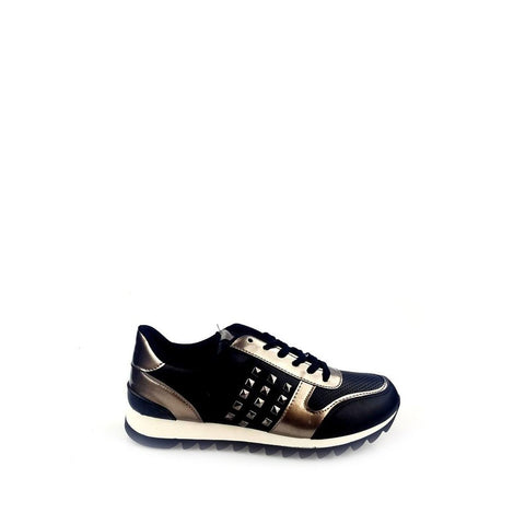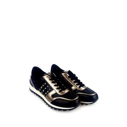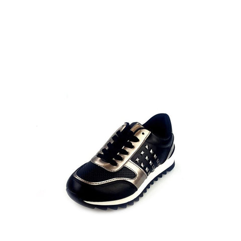 Join the squad at Miss Diva and get these designer inspired rock stud trainers in your wardrobe. Hit refresh on your footwear. We're lusting over these rock stud metallic trainers. Featuring a metallic two tone and must have rock studs with contrasting black laces, they will have you sneaking into the weekend.