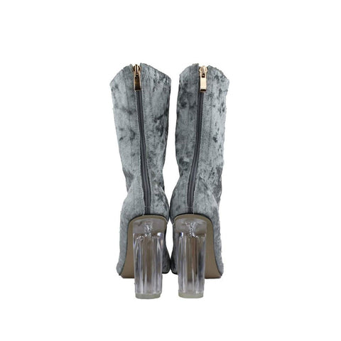 Join the squad at Miss Diva and get this ladies crush velvet ankle boot in your wardrobe. These boots are lush. Let these boots do the talking with their fabulous grey velvet and heel zip. Make sure these go in your shoe-drobe and channel your inner velvet vixen!
