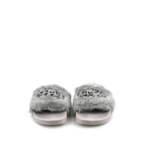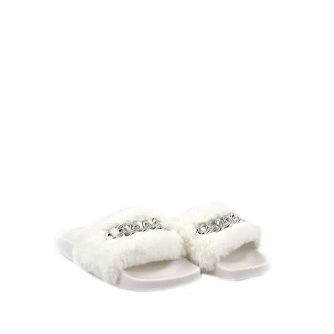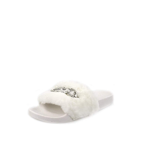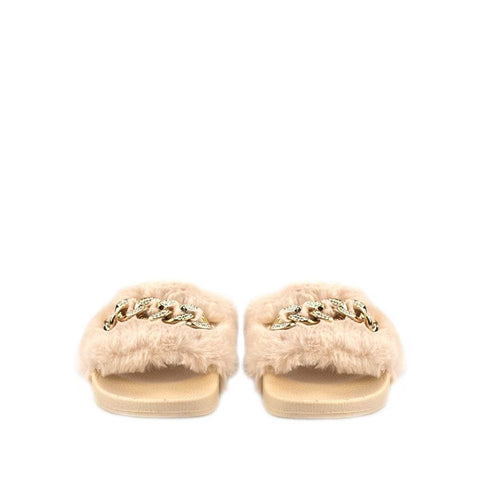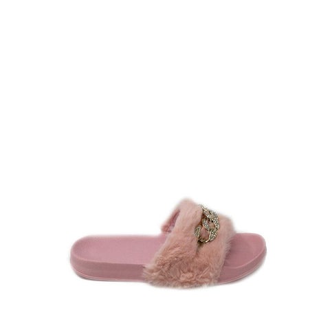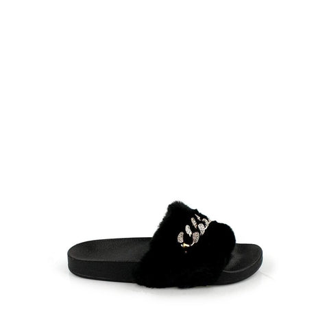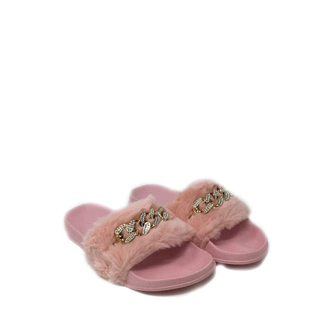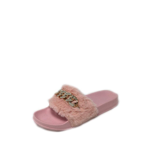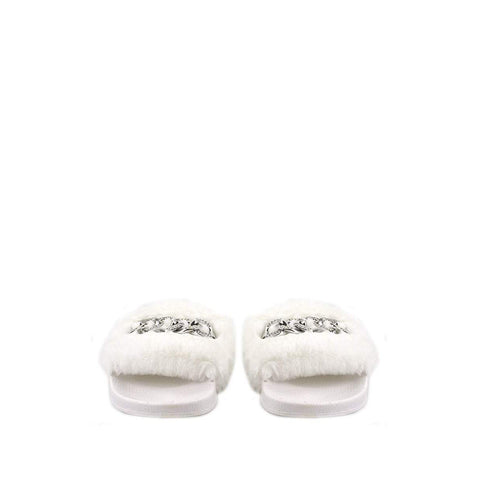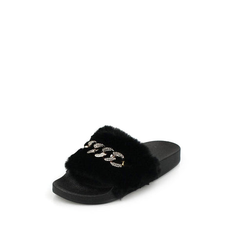 These are a must-have for this summer! With a trendy fur trim and with a beautiful link chain detail, turn your slider game up a notch!