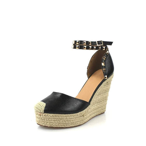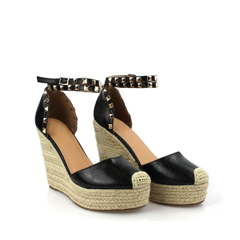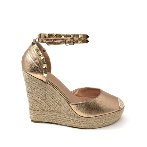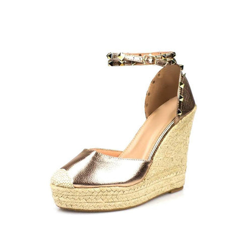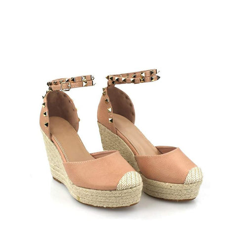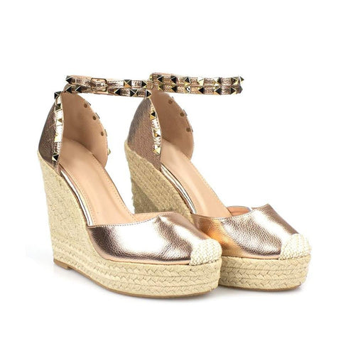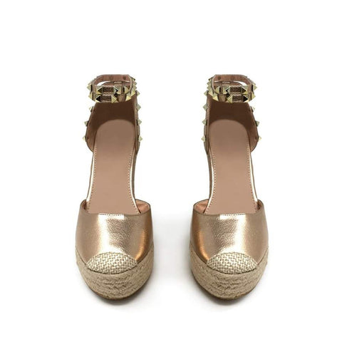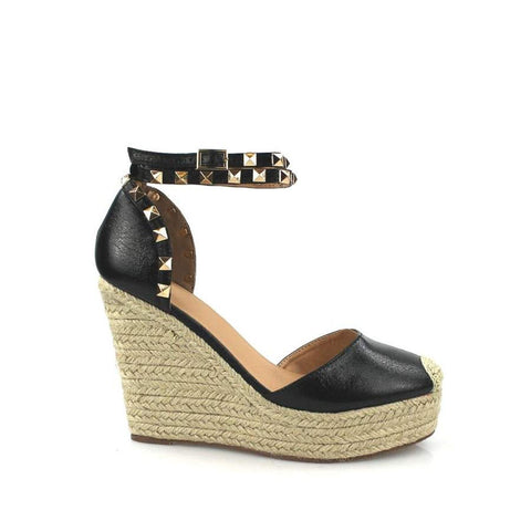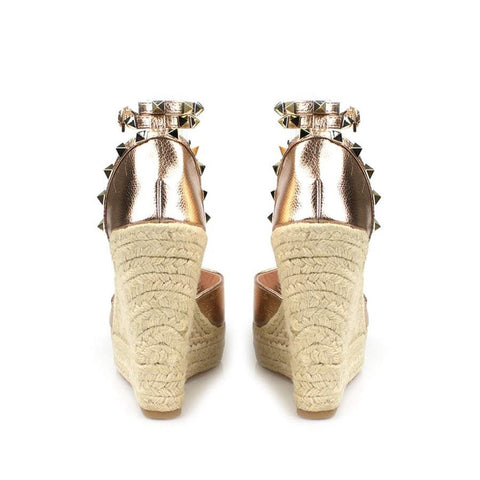 Amilia Espadrille Wedge Studded Platform Ankle Strap Sandal