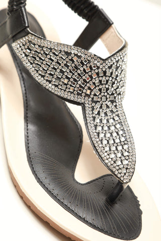 Join the squad at Miss Diva and get these ladies low wedge diamante toe post sandal in your wardrobe Set to catch the sun beautifully are the diamante's incorporated on these new diamante toe post sandals. Featuring low wedge and stretchy slingback to extra comfort.