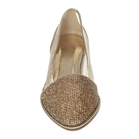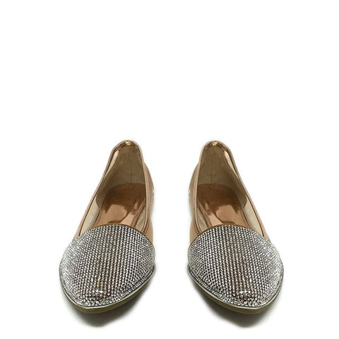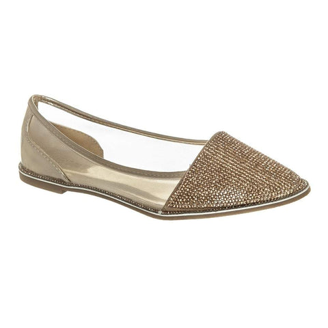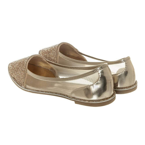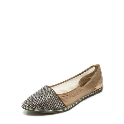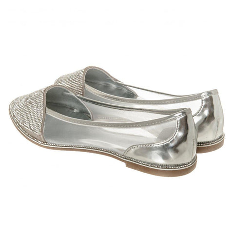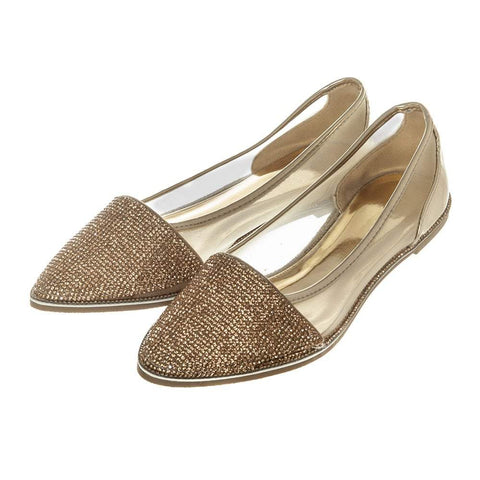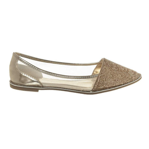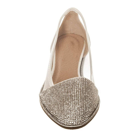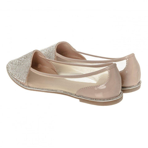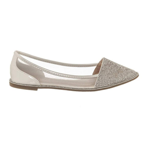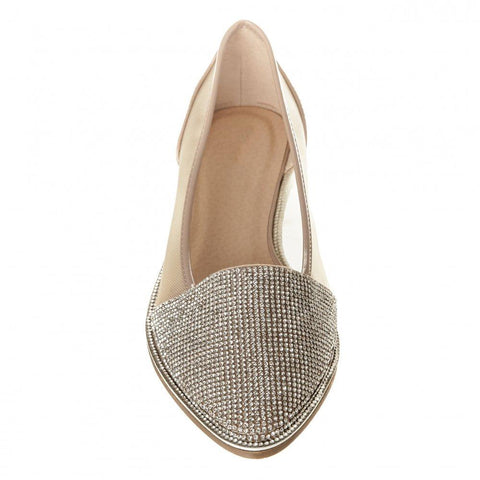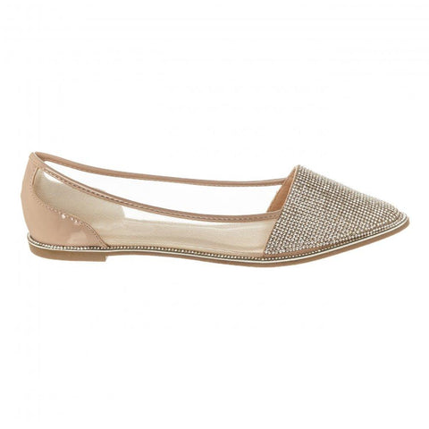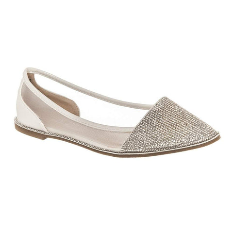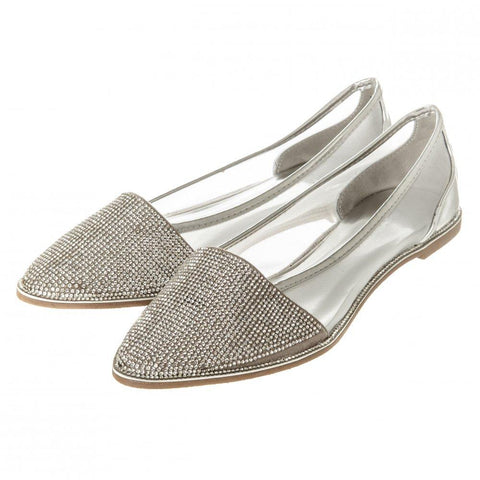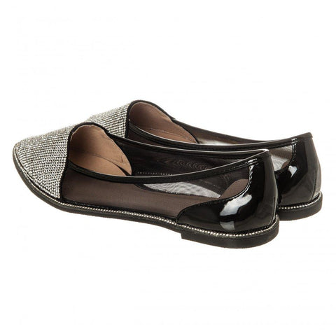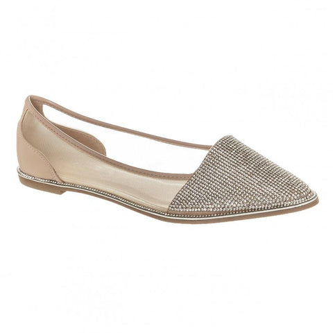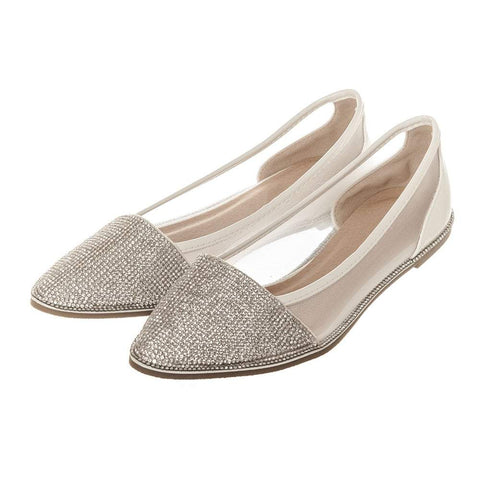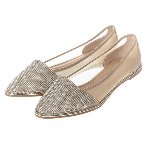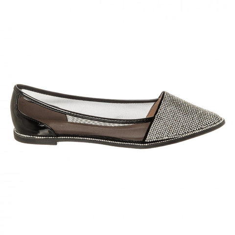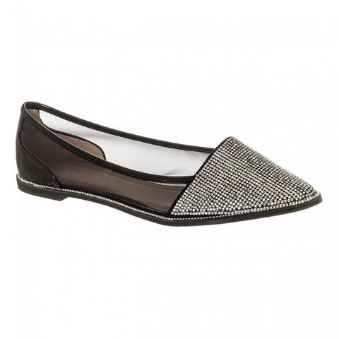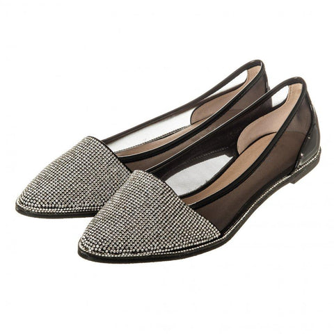 Flat Pointed Toe Diamante Shoe Mesh Side