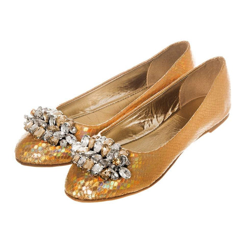 With a gorgeous jewel brooch embellishment, these versatile pumps can dress up a pair of skinny jeans, your favourite dress, and will even work for your prom look! Dress to impress in these pretty, sparkling ballerina pumps.