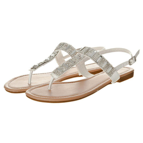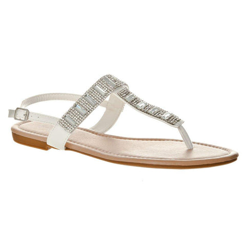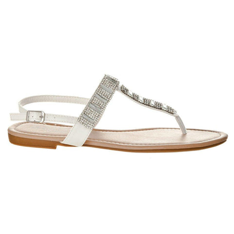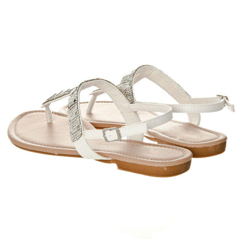 These dainty Tinker Bell Sandals are a beautiful jewelled and diamante addition for your summer wardrobe. With a toe-post design and sling back buckle ankle strap, these sandals have dazzling diamante and jewel decoration for a glam, elegant summer look. Available in Black, Fuchsia, Nude and White, these beauties are sure to become a vacay favourite!