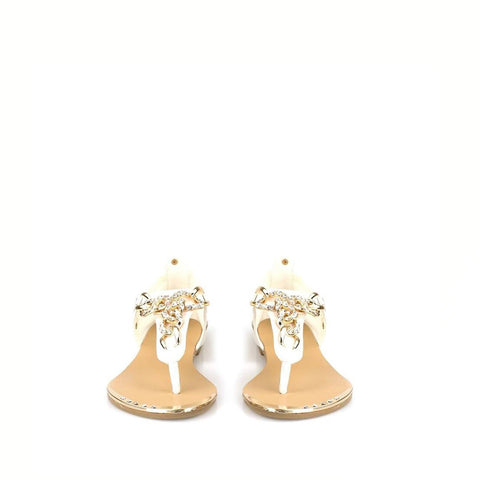 Join the squad at Miss Diva and get these ladies flat toe post diamante chain sandal in your wardrobe This flat toe post diamante chain sandal is a charming addition to your wardrobe. Featuring diamante chain in a toe post design, these sandals will be sure to keep your summer wardrobe on fleek!