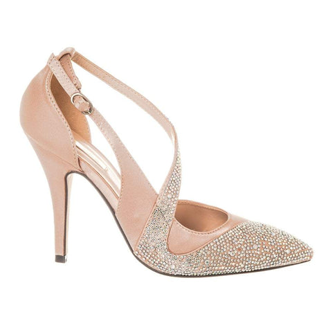 - Crossover Strap Satin Diamante Court Shoes