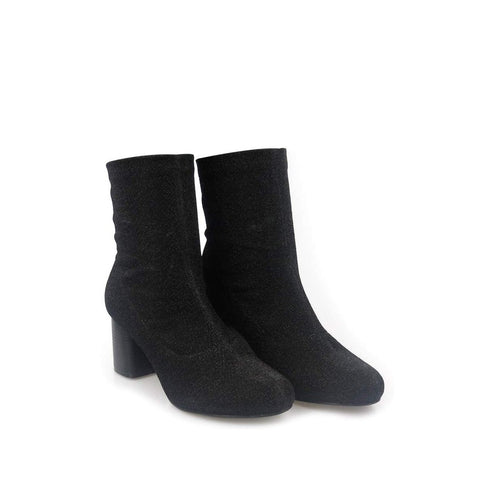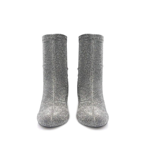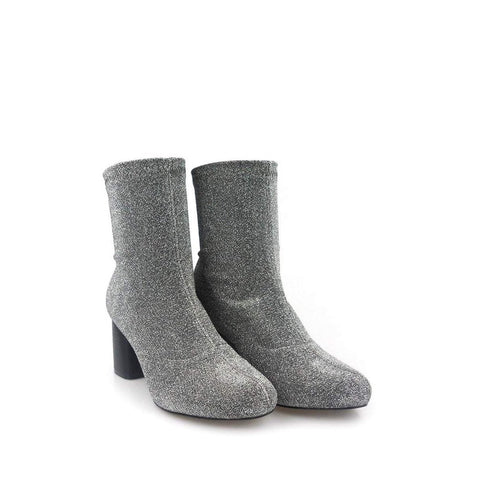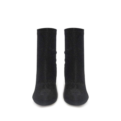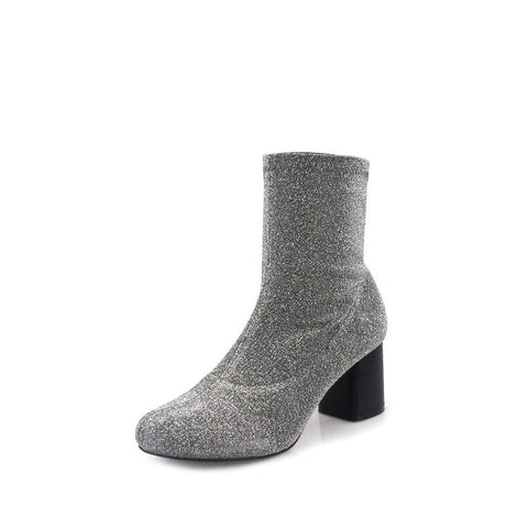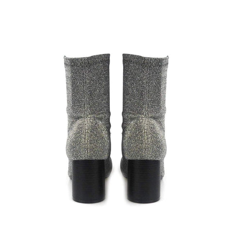 TRINNIE Ladies Block Heel Knitted Glitter Ankle Boot