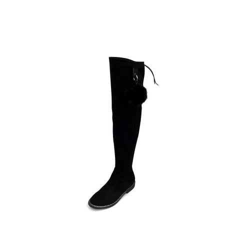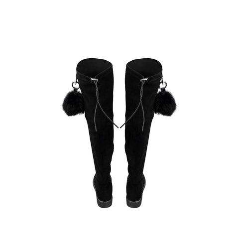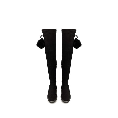 We're loving these Lilly Pom Pom Boots. With a knee high design, round toe, low blow heel, suede finish and cute furry pom poms, these boots will look super cute with a jumper dress or your fav skinny jeans.