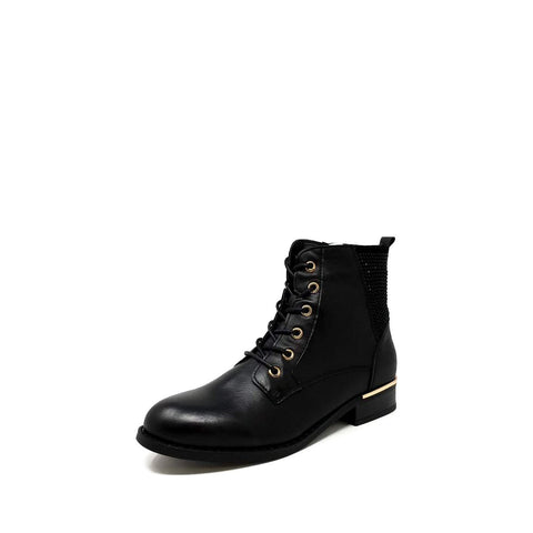 Hey warrior queen, these are the boots for you…Slip in and lace up these Mika Military Boots to inject your outfit with some sparkling, badass attitude. These lace up ankle boots feature a low block heel and cute diamante detailing for a girly spin on a classic look. Team with some skinny jeans and a moto jacket for total cool girl vibes…