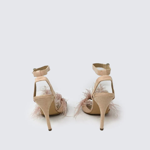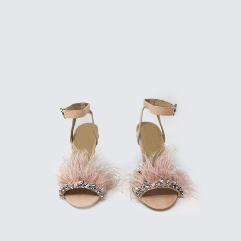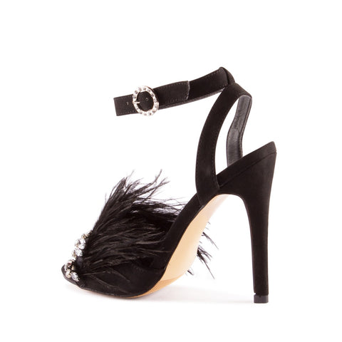Bring drama, bring diva, bring sass in these fierce Nanda Sandals. With a round buckle ankle strap, sexy stiletto heel and glamorous feather and diamante detailing, these heels are a sexy statement for a night out.