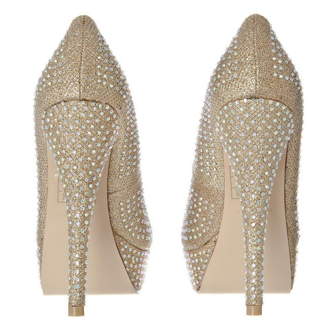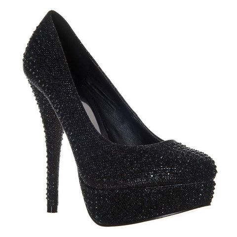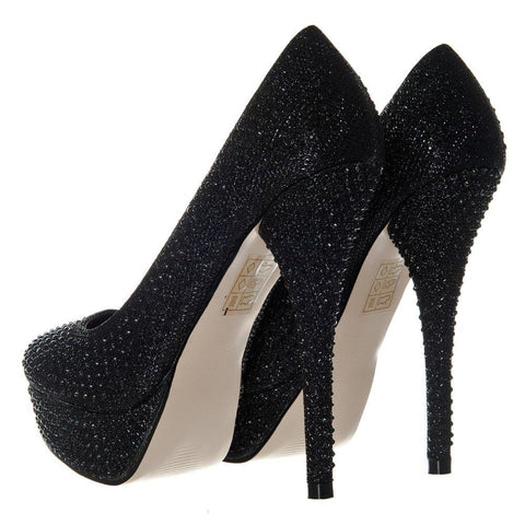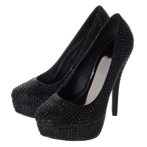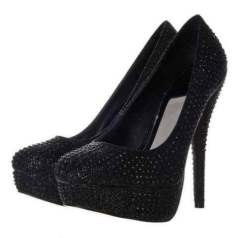 For ultimate glam, slip into these Jenika Courts! With a platform sole and sexy stiletto heel, these courts are covered in dazzling diamantes for an irresistible sparkling diva look. Available in Black, Silver and Gold, you'll light up the dance floor in these beauties!