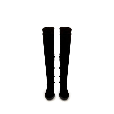 Join the squad at Miss Diva and get these ladies chunky cleated sole knee boot in your wardrobe. Make sure your outfits are on-point in these black microfibre. Featuring a killer chunky sole and a rubber high heel, you can style these with just about anything!