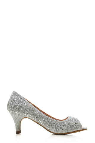 Join the squad and get this ladies diamante open toe kitten heel in your wardrobe Add some serious glamour to your look this party season with VIOLETTA. Its stunning diamante detail and sexy peep toe are gonna make them totally worthy of any evening occasion.