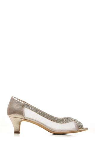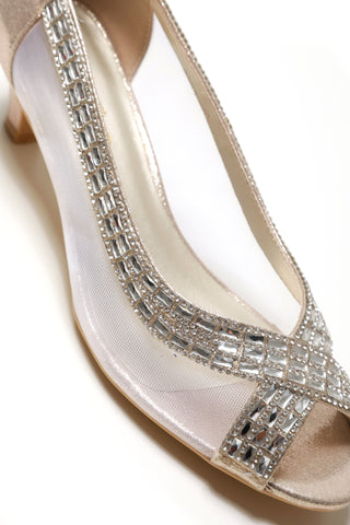 For a sophisticated yet dazzling heel, try these gorgeous Willow Courts. With a kitten heel, open toe, mesh sides, diamante bead trim and slip on design, these heels are comfortable, elegant and sparkling. Perfect for special occasions!