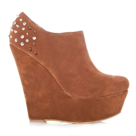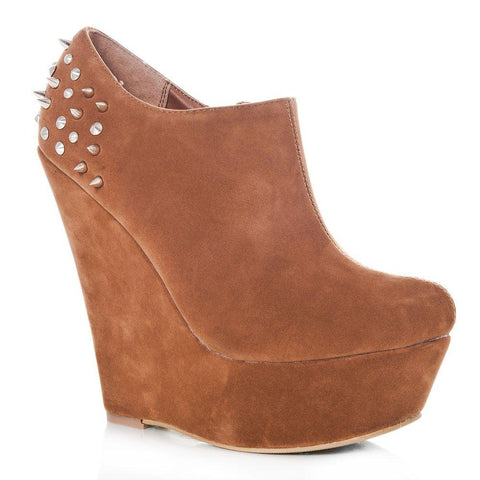 KOI Zip Up Platform Wedge High Heeled Ankle Shoe Boot With Studs