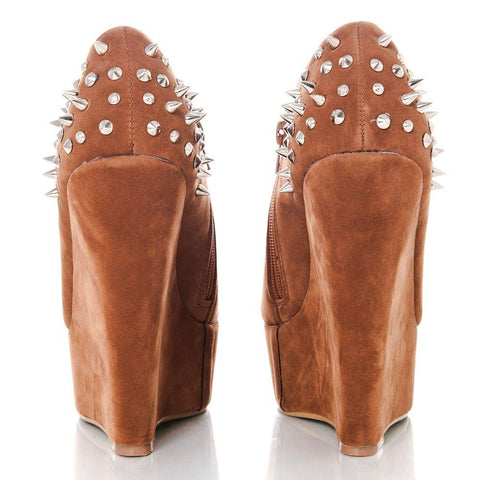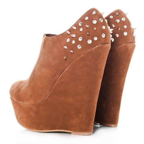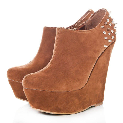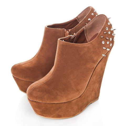 Round toe zip up platform wedge high heeled ankle shoe boots.Add a bit of street style into your footwear collection with this ankle shoe boot. Features spike detailing at the back of the shoe, platform and wedge high heel. Play it cool with your favourite skinny jeans and a top.